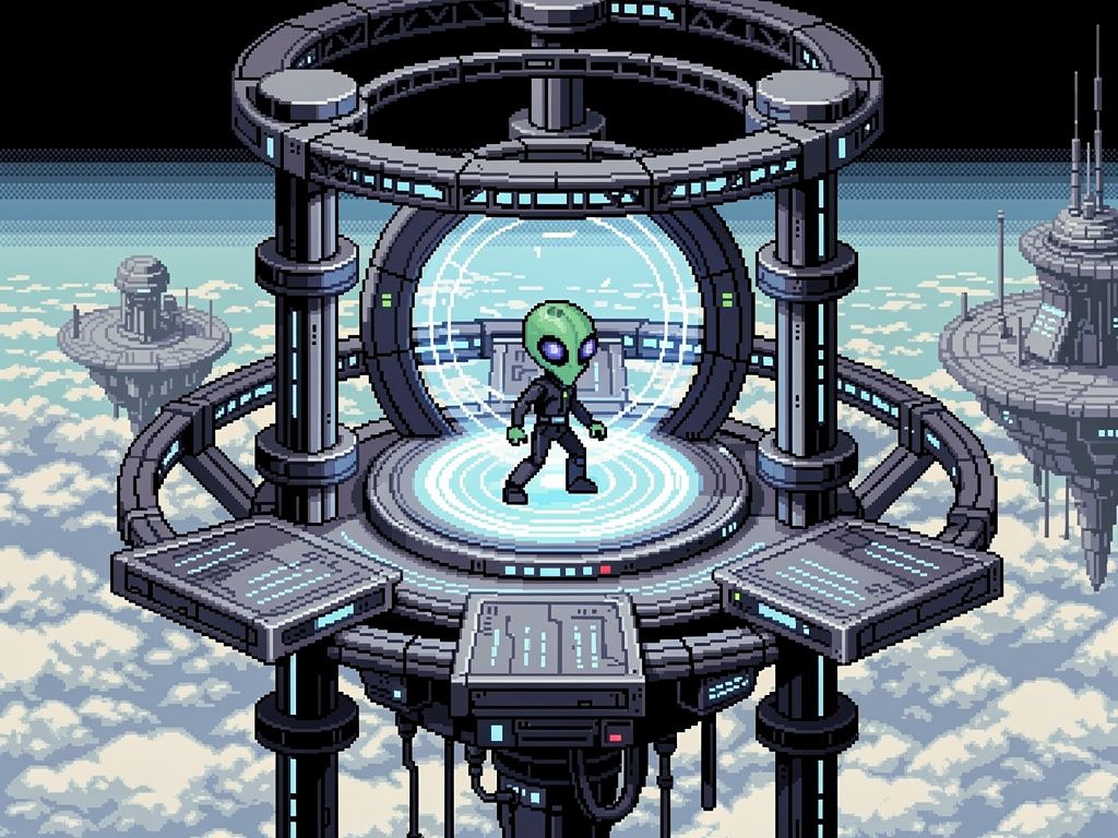 Pixel-perfect sprite art in classic SNES style. Blocky edges, limited palettes, nostalgic chiptune vibes.