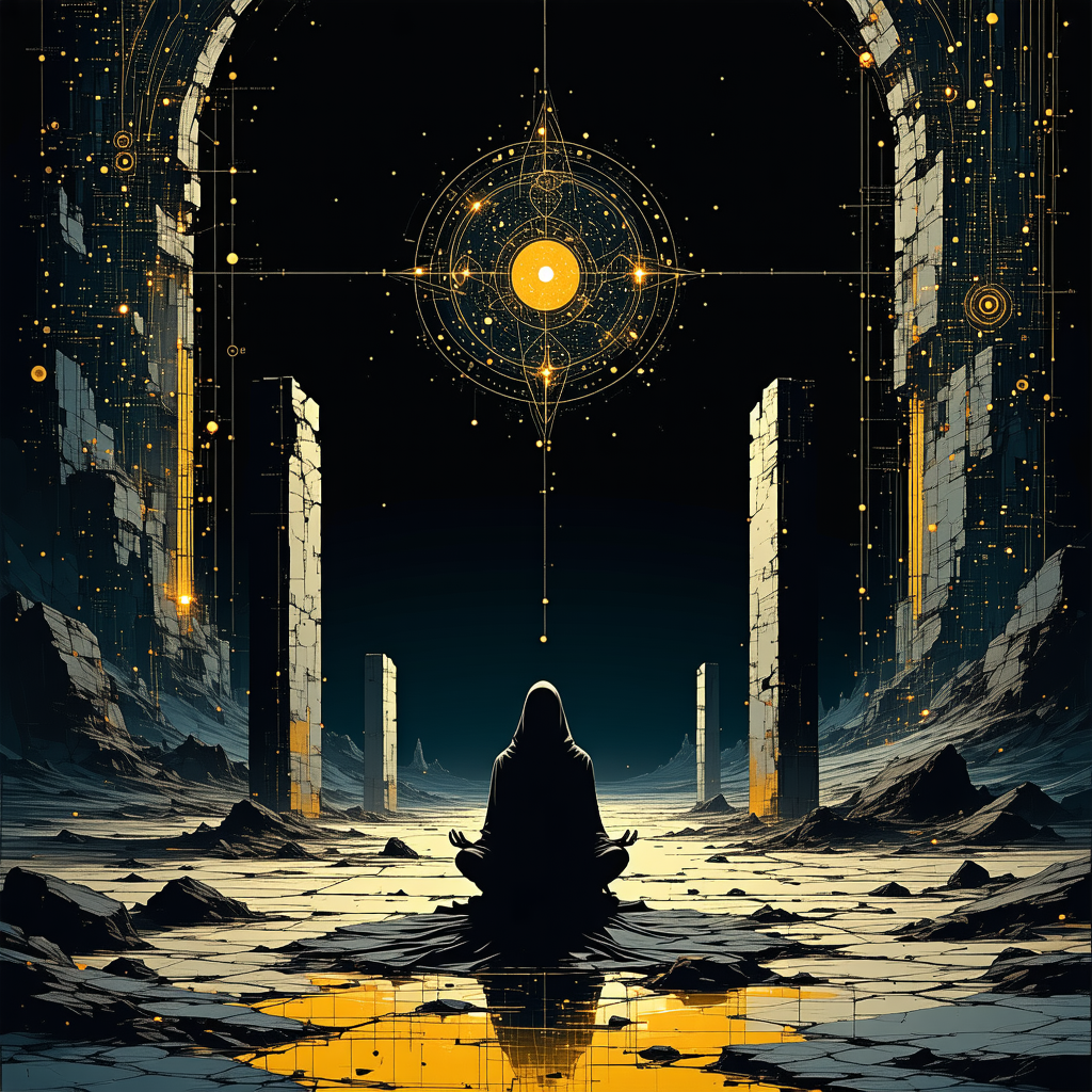 Occult tarot card aesthetic with gothic linework, mystical symbols, and rich card-format compositions.