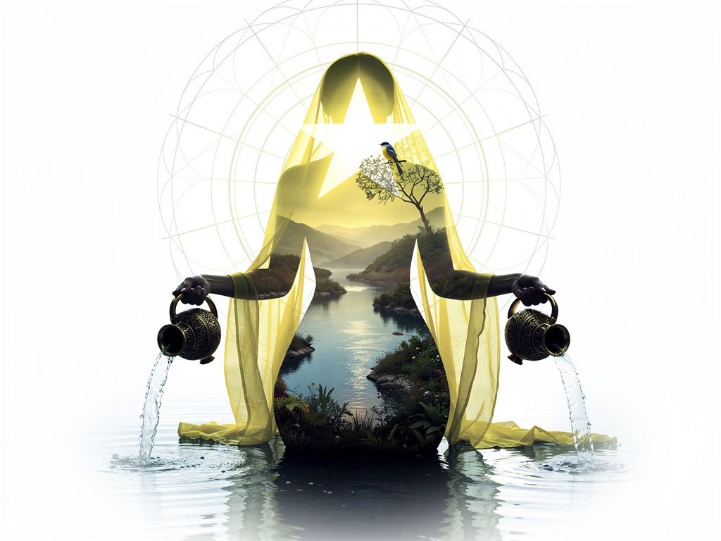 Surreal double-exposure blend of two overlapping subjects — dreamlike, ethereal, conceptually rich.