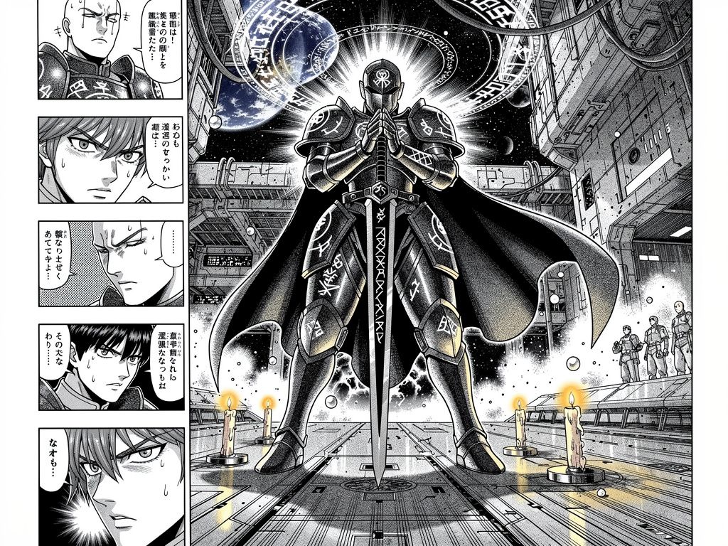 Black-and-white manga with dynamic panel energy, bold screentones, and expressive ink linework.