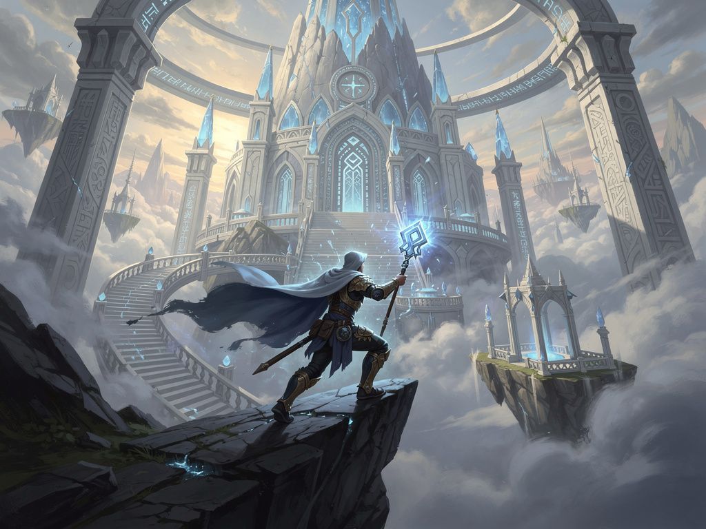 Fantasy trading-card art: dramatic lighting, ornate borders, and painterly detail worthy of a foil rare.