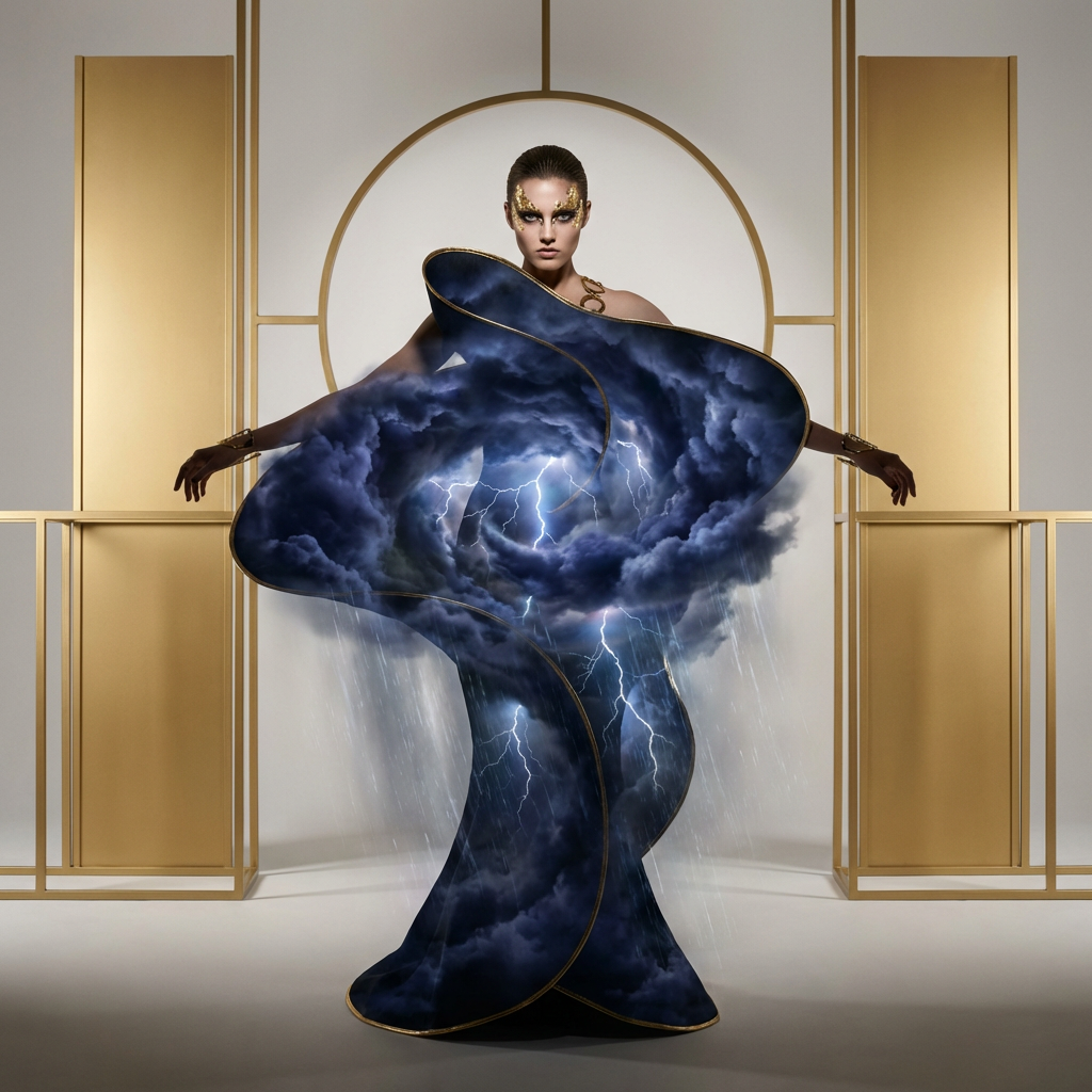 High-fashion editorial photography with magazine-cover compositing, luxury lighting, and bold framing.